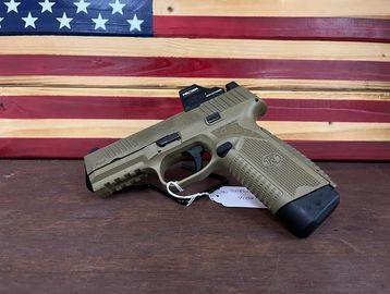 FN America Law Enf, 509 MRD FOS, Striker Fired, Semi-automatic, Polymer Frame Pistol, Full Size, 9MM, 4" Cold Hammer Forged Barrel, Flat Dark Earth, Interchangeable Grip Backstraps, Fiber Optic Sights, Optics Ready ACRO Mounting Plate Included, 1 12rd 1 15rd 3 25rd