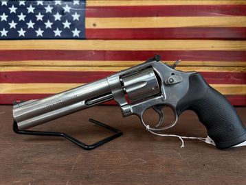 Smith & Wesson, Model 686 Plus, Double Action/Single Action, Metal Frame Revolver, L-Frame, 357 Magnum, 6" Barrel, Stainless Steel Frame, Satin Finish, Silver, Rubber Grips, Adjustable Rear Sight, 7 Rounds