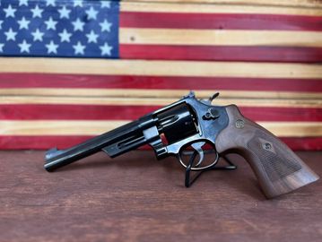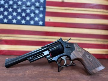 Smith & Wesson, Model 57, Classic, Double Action, Metal Frame Revolver, N-Frame, 41 Magnum, 6" Barrel, Carbon Steel, Blued Finish, Wood Grips, Adjustable Sights, 6 Rounds