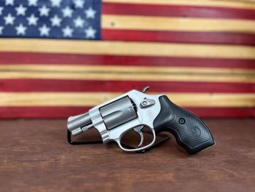 Smith & Wesson, Model 637, Double/Single Action, Metal Frame Revolver, J-Frame, 38 Special +P, 1.88, Aluminum Alloy, Matte Finish, Silver, Rubber Grips, Fixed Sights, 5 Rounds