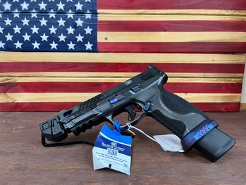 M&P9 Shield EZ, Performance Center, Internal Hammer Fired, Semi-automatic, Polymer Frame Pistol, Micro-Compact, 9MM, 3.8" Ported Barrel, Armornite Finish, Black, HiViz Litewave H3 Tritium/Lightpipe Sights, Manual Thumb Safety, 8 Rounds, Performance Center Aluminum Trigger, Cleaning Kit, 2 Magazines